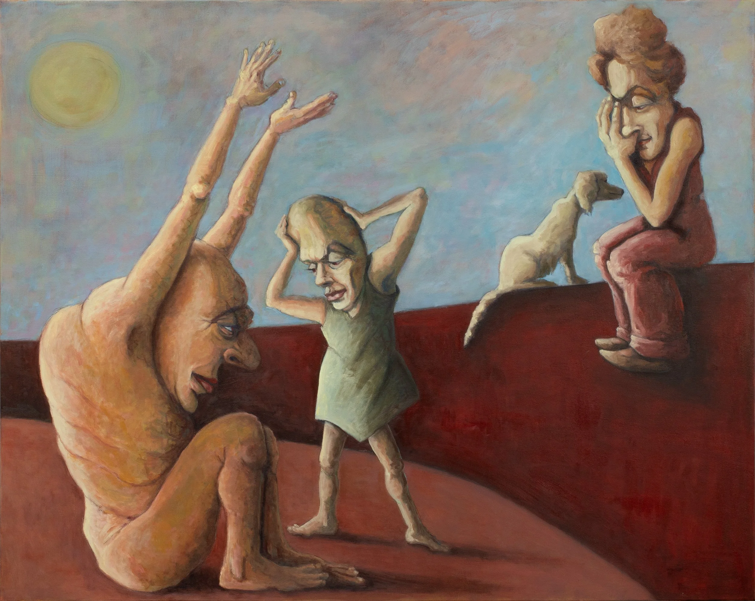 Paintings from my ongoing series titled Strange Times, which examines the psychological impact of our social environment.
